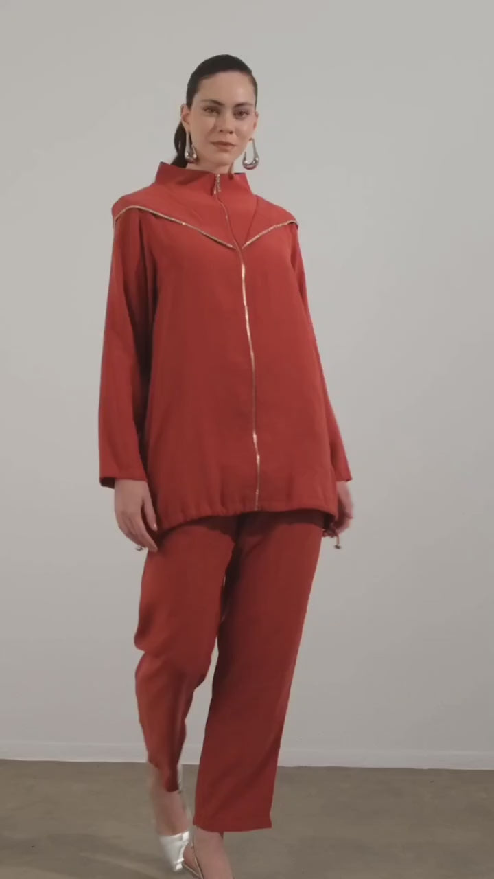 يتميز هذا القميص بغطاء رأس ناعم البنية، مُحاط بحواف كريستالية رقيقة، ويضفي لمسة من اللمعان البسيط. يُغلق بسحاب ذهبي فاتح، ويتضمن جيوبًا جانبية عملية. تصميمه مُدبب قليلاً ليُبرز قوامك، مع السماح لك بالحركة برشاقة. تصميمه متعدد الاستخدامات وبسيط، مما يجعله مناسبًا للصيف، ومناسبًا أيضًا للارتداء على طبقات في الخريف.