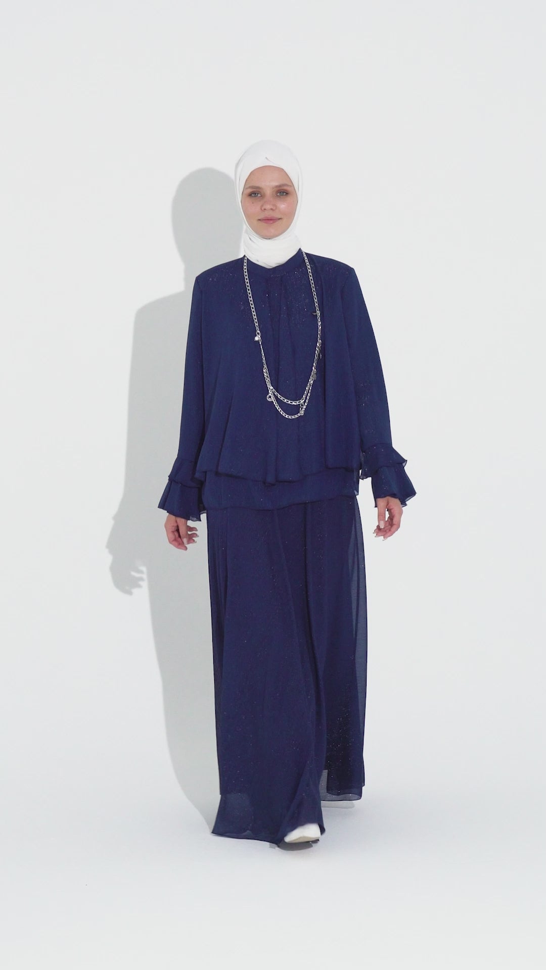 Exclusively part of Signature Drop I, this two-piece ensemble is designed for women seeking full coverage with refined femininity and ease. The flowing tunic features a round neckline and romantic ruffled cuffs, while the floor-length skirt adds movement and shimmer to every step.
